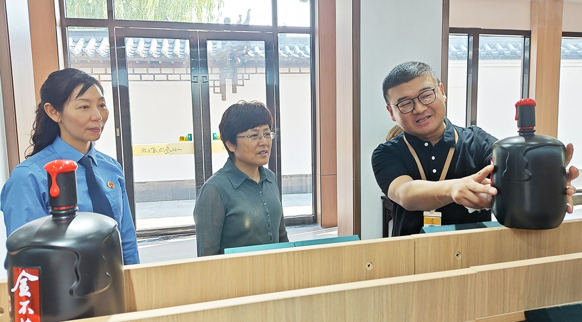 劉繼英一行在金不換集團(tuán)黨委書記、總裁支濤的陪同下,實(shí)地查看了金不換白酒儲(chǔ)藏、銷售、生產(chǎn)、文化展示基地。聽取企業(yè)生產(chǎn)經(jīng)營(yíng)情況和發(fā)展規(guī)劃介紹。劉繼英檢察長(zhǎng)對(duì)金不換多年來(lái)堅(jiān)持守法誠(chéng)信經(jīng)營(yíng),創(chuàng)造良好生產(chǎn)經(jīng)營(yíng)環(huán)境,取得高質(zhì)量發(fā)展給予高度贊揚(yáng)。